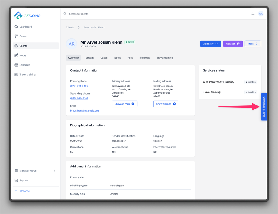 We've made it easy to report bugs and provide feedback on the app with our integrated feedback widget. You'll find the widget conveniently located on the middle right-hand side of the screen.