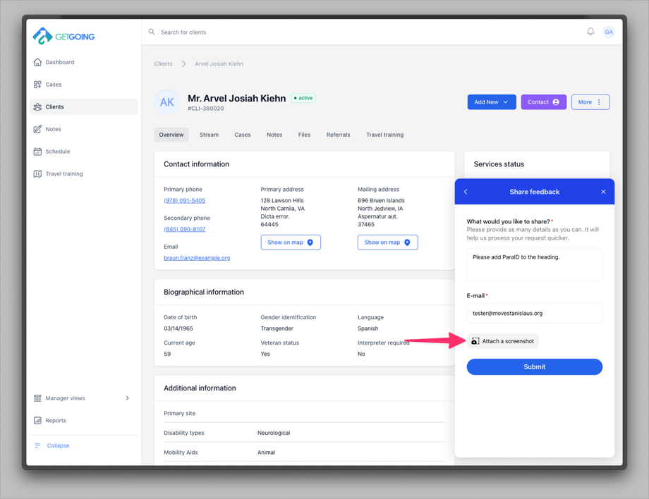 When using the feedback widget, you can easily attach a screenshot to provide more context for your submission. To do this, simply click on the "Attach a screenshot" button located at the end of the form.
