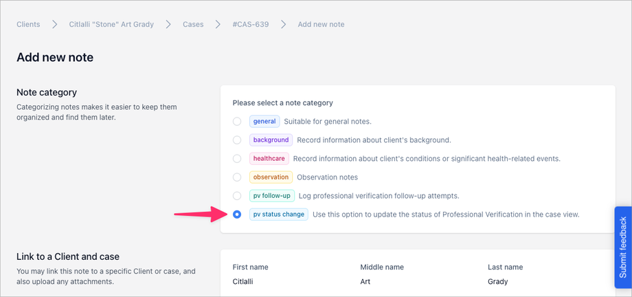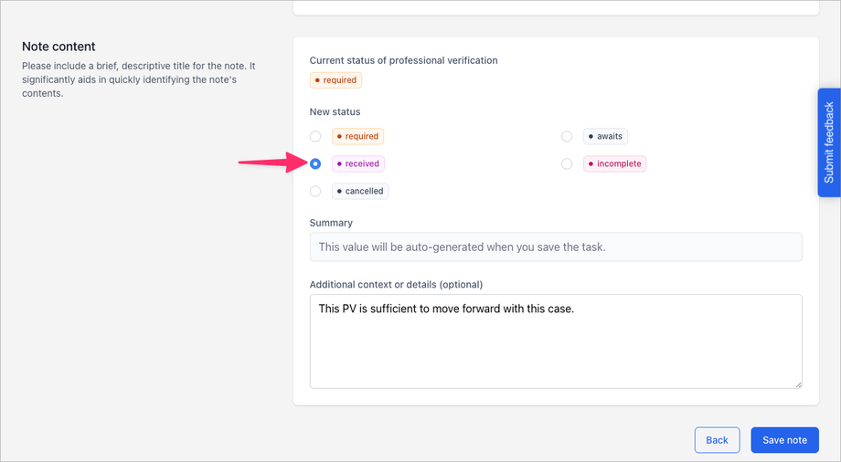 This action removes the PV requirement from the case, allowing you to proceed with the determination process.